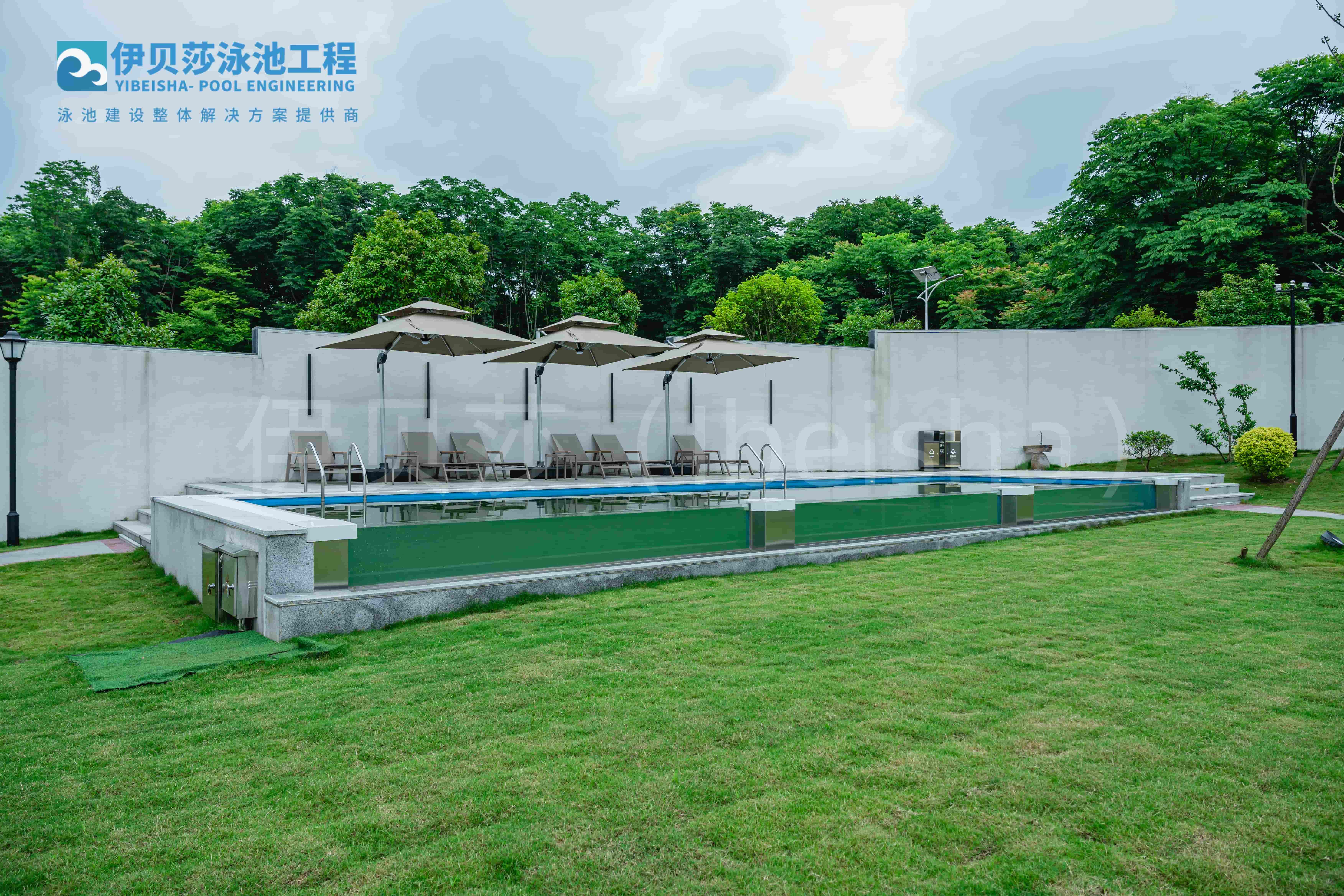 当无边透明钢化玻璃与澄澈池水相融,一方泳池便不再是简单的休闲空间,而是成为了建筑与自然的对话载体,是生活美学的极致表达。伊贝莎无边透明钢化玻璃泳池,以“玻璃映万象,水境藏乾坤”的设计哲思,为别墅庭院与酒店景观勾勒出独树一帜的水畔风光。 玻璃,是这款泳池的灵魂载体。伊贝莎选用高品质钢化玻璃,经过严苛的抗压、防爆工艺处理,兼具通透质感与坚固性能。澄澈的玻璃墙体如同一面无瑕的镜子,将天光云影、草木葱茏尽数收纳。白日里,阳光穿透玻璃,在池底投下粼粼波光,游弋其中,仿佛与户外的清风绿意相拥,打破了室内外的空间界限;夜幕降临时,泳池边的灯光次第亮起,柔和的光线透过玻璃弥散开来,池水宛如一块流动的水晶,将星空月色揉碎在涟漪里,营造出梦幻而静谧的氛围。 水境,则是这款泳池的意境核心。伊贝莎无边透明钢化玻璃泳池的“无边”设计,消解了泳池的物理边界,让池水与远处的景致自然衔接。在别墅庭院中,它可以与假山流水相映成趣,成为庭院景观的点睛之笔;在度假酒店里,它能够临窗而建,让住客在畅游时俯瞰城市繁华或山海盛景。更值得一提的是,伊贝莎深谙泳池使用的核心痛点,从防渗、过滤、水循环等多个维度进行技术升级。精密的防渗工艺杜绝了渗漏隐患,高效的过滤系统时刻保持水质清澈洁净,智能水循环系统则让池水始终处于鲜活状态,无需费心维护,便能尽享亲水之乐。