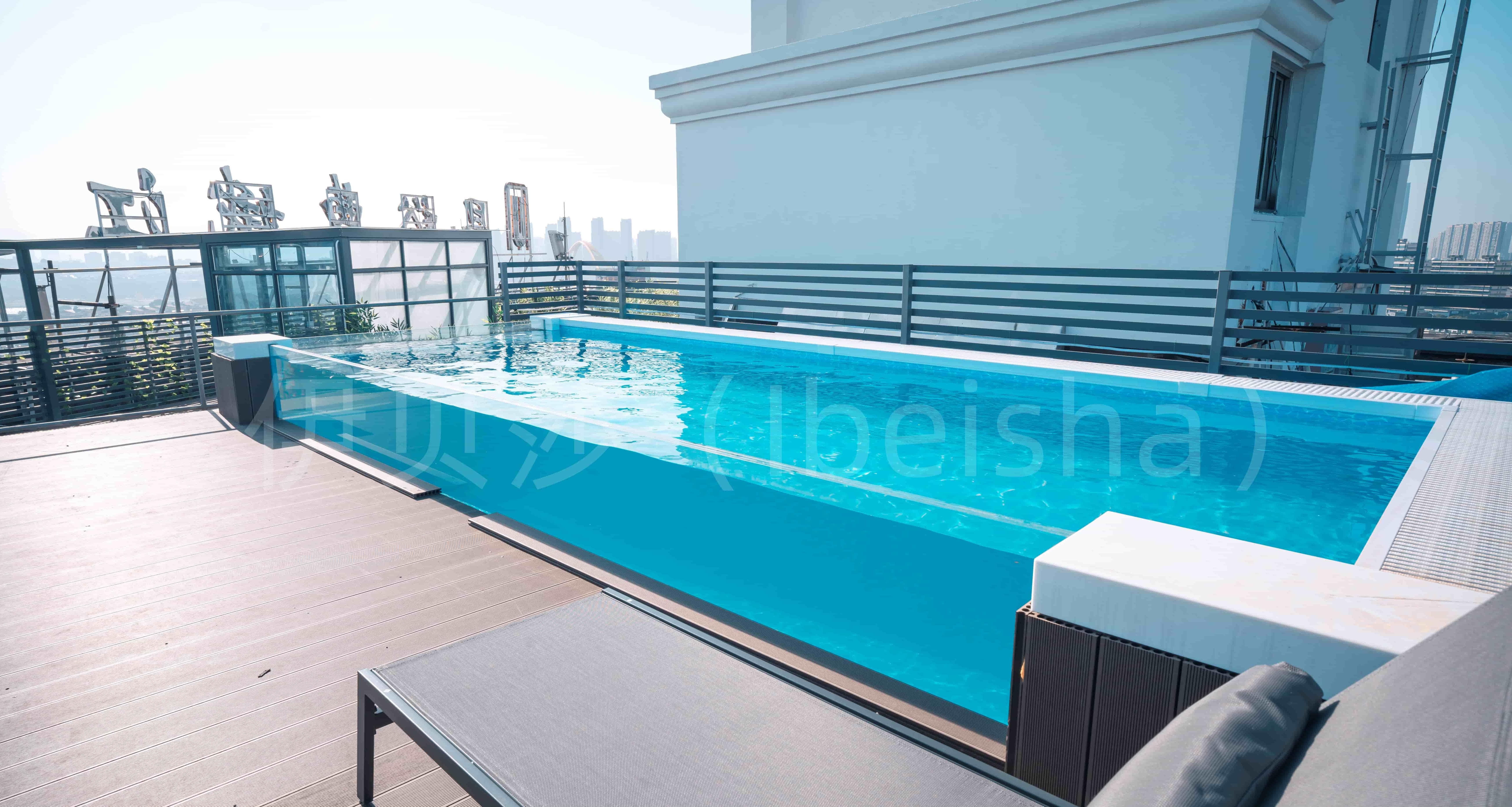 在高端泳池的打造中,水质澄澈与防渗稳固是两大核心要义,直接决定着使用体验与产品耐用性。伊贝莎深耕泳池技术研发,以创新净水工艺与硬核防渗科技为双核心,针对无边透明钢化玻璃泳池的产品特性量身打造技术体系,破解传统泳池水质易恶化、易渗漏的行业痛点,让通透美学与实用性能完美融合,为别墅、商业空间等多元场景带来兼具品质与安心的亲水解决方案。 伊贝莎的净水工艺,以深度净化与智能循环为核心,打造出接近饮用水级的纯净水质。摒弃传统泳池粗放的换水投药模式,伊贝莎采用硅藻土精滤系统构建全方位净水矩阵,依托硅藻土亿万年前形成的蜂窝状多孔结构,打造出精密滤饼层,可实现1-3微米的微米级过滤,远超人类肉眼40微米的识别极限,能高效截留水中悬浮物、微生物甚至隐孢子虫等顽固病原体,净化去除率超99.5%。同时,硅藻土表面的微弱电荷可精准吸附水体中的色素、异味与有机物,实现净化与除味的双重功效。配合全池无死角环流设计与无边溢水工艺,池水以池体周长为吸污口,每1.5小时即可完成全域水循环,彻底消除死水区,从根源避免藻类滋生。更搭载24小时智能监测系统,实时追踪pH值、浊度等关键水质参数,自动调节水循环速率与消毒剂量,搭配低能耗紫外线杀菌技术,无化学药剂残留,大幅减少氯味刺激,让水质长效澄澈,无需频繁换水即可保持稳定状态。