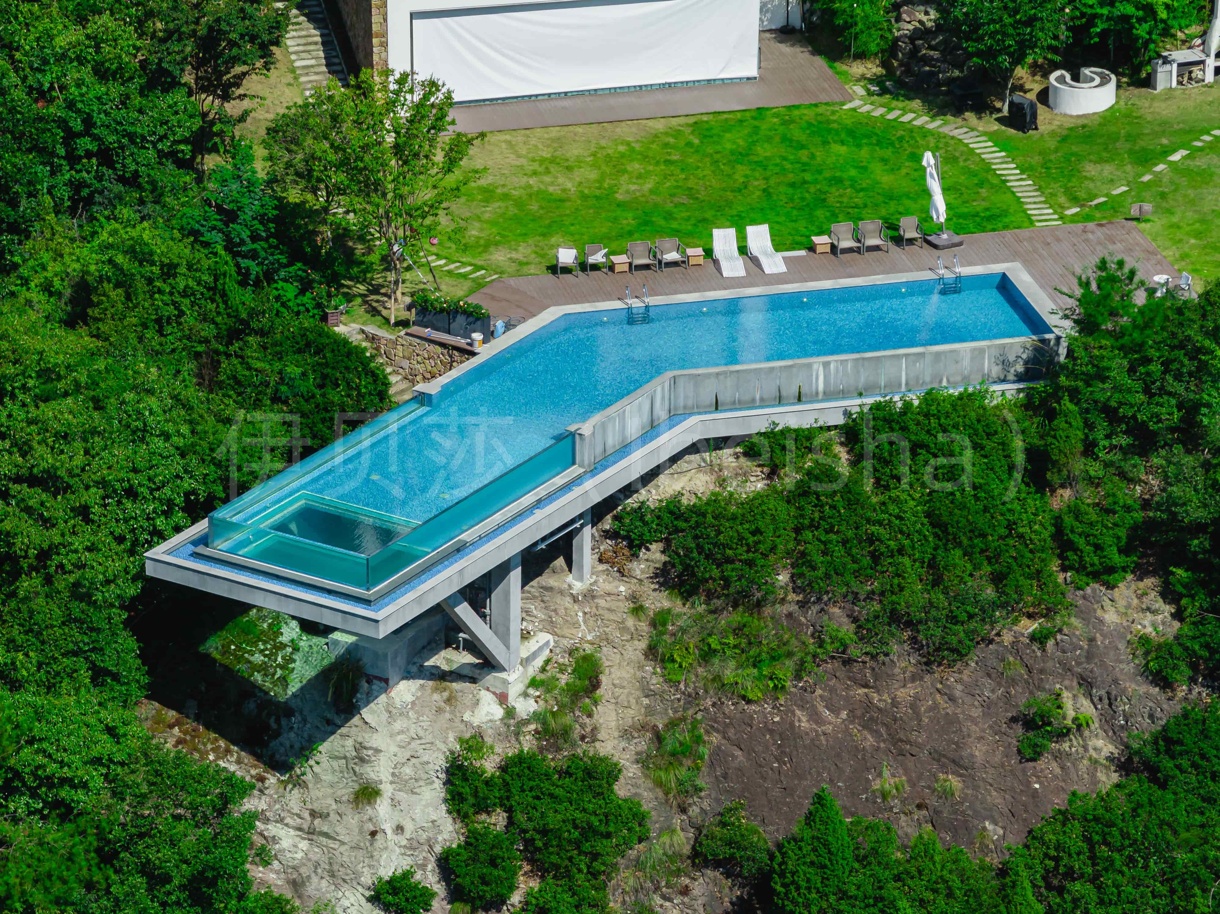 竣工验收与后期维护是避坑的保障,需做到全面检测,长效养护。验收并非简单注水测试,而是覆盖全维度的专业核查,不仅要确认玻璃表面无划痕、密封胶线条均匀,更要开展72小时高压闭水测试,确保水位下降不超过2mm,同时调试水循环系统,保证循环效率达标,校验水质指标与配套电气设备的运行状态。交付后需建立规范的维护体系,每季度用中性清洁剂清洁玻璃表面,避免硬物划伤,硬水地区定期处理水垢;每半年检查密封胶与连接件状态,开裂脱落及时更换;每年进行全面检测,涵盖玻璃平整度、固定结构牢固性与排水系统通畅性,避免酸性、碱性物质直接接触玻璃与密封胶。 伊贝莎透明泳池的建造,是专业与细节的双重考验。从设计勘察的前期规划,到选材施工的中期把控,再到验收维护的后期保障,唯有全流程严守专业标准,层层规避高频坑点,才能让这份通透的水上景观,既保持颜值与质感,又实现长期安全稳定运行,成为空间中兼具美学与实用的经典之作。